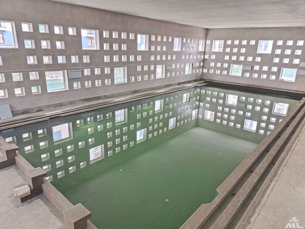 Учреждение образования расположилось в 20-м квартале на ул. Н. Теслы. Его изюминкой стал отдельно стоящий бассейн с трибуной на 100 мест. На данный момент строители готовятся к монтажу сидений. Малый бассейн (6 × 10 м) уже выложен плиткой, а в большом (25 × 11 м) проводятся испытания гидроизоляции, после чего плиточники начнут облицовку чаши. Отделочные работы в раздевалках и административно-технических помещениях уже на финишной прямой.