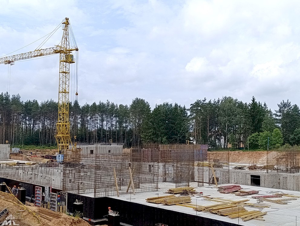 В главном корпусе почти готов цокольный этаж. До конца месяца строители завершат основной объем монолитных работ и начнут обустраивать входы, крыльца и лестницы.
