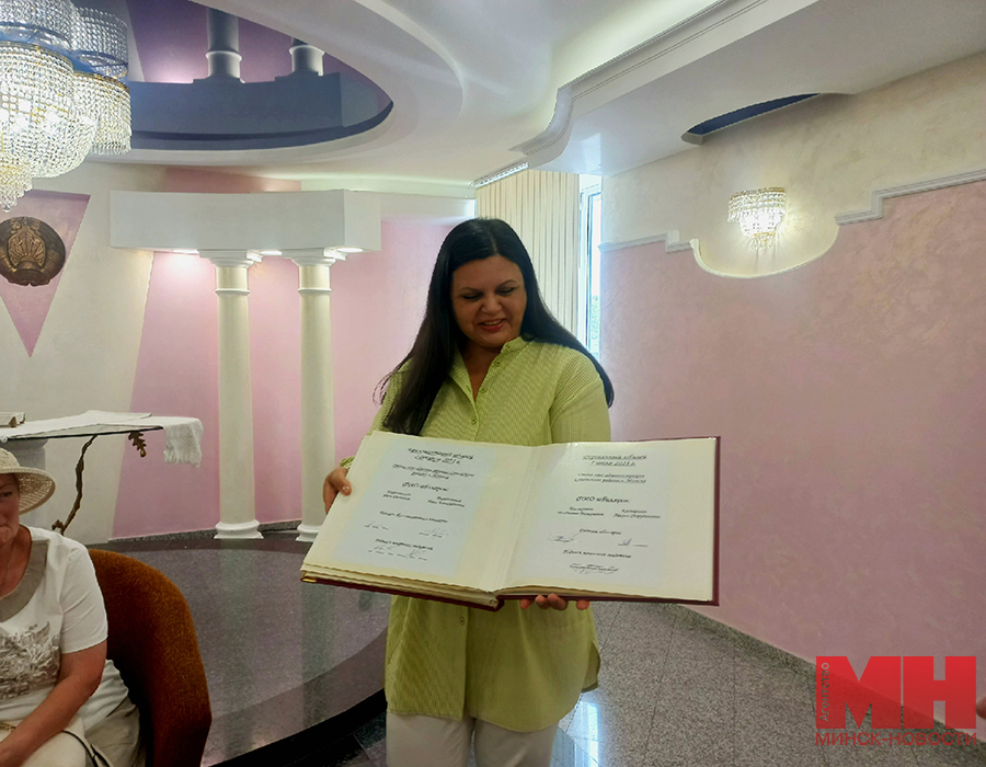 В завершение сотрудники ЗАГСа вручили минчанке подарок и поблагодарили ее за полезный и трогательный рассказ.