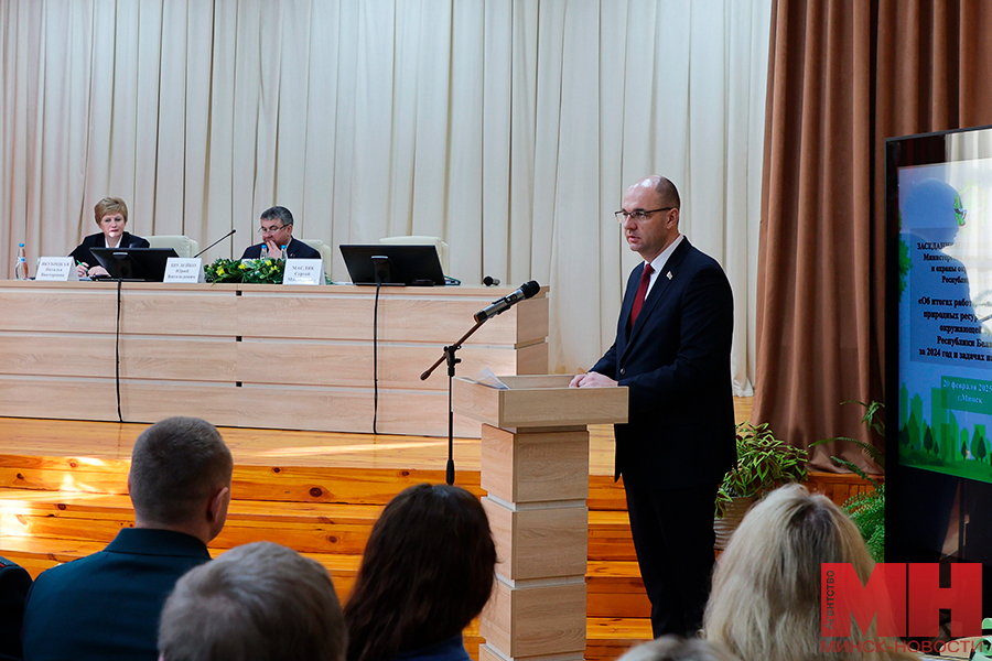 На заседании заслушали отчеты о работе ведомства за 2024 год, поставили задачи на 2025-й. Министр природных ресурсов и окружающей среды Сергей Масляк уделил внимание вопросу сооружения ограждения со стороны польской границы в Беловежской пуще: