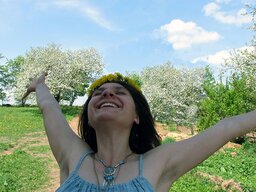 – На открытии выставок выступает мой друг – молодой белорусский композитор Иван Солас. Он пишет космическую музыку, исполняет ее на арфе, – рассказывает художница. – Познакомились случайно. Как-то он написал мне: «Можно ли использовать фото ваших картин? Хочу создать видеотрек к своей музыке». Словом, мы удачно дополнили творчество друг друга.