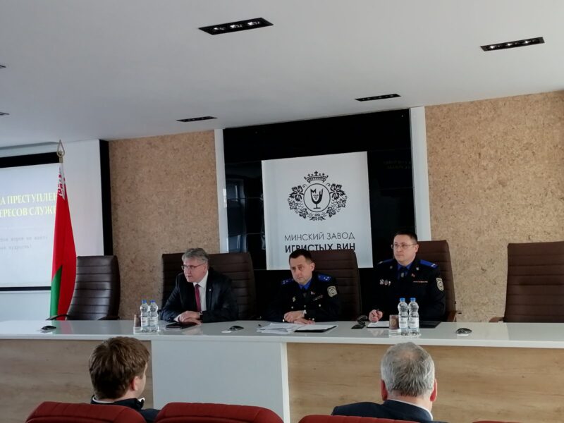 Перед коллективом выступил и руководитель Минского завода игристых вин Геннадий Богдан, который рассказал о последствиях совершенного преступления для коллектива предприятия, а также о принятых профилактических мерах руководством концерна пищевой промышленности «Белгоспищепром» по недопущению подобного впредь.