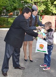 В завершение встречи гости поздравили мальчишек и девчонок с приближающимся началом учебного года. Тем, кто 1 сентября пойдет в школу, сотрудники милиции подарили яркие рюкзаки, а исполняющий обязанности первого секретаря РК ОО «БРСМ» Михаил Гайдучонок вручил канцелярские принадлежности. Самые маленькие подопечные центра, которым пока рано садиться за парту, также не остались без подарков – получили мягкие игрушки.