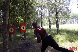 На четвертом этапе метали саперные лопатки в деревянные макеты. Не слишком точные участники отправлялись на штрафной круг. Он был небольшим, но часть его требовалось проползти, что отнимало драгоценные силы и время.