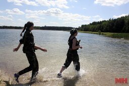 Три километра испытаний: в Минске девушки проходили военно-спортивную эстафету наравне с парнями