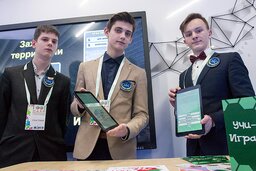 Учащиеся лицея № 1 Николай Сковпень, Владислав Анисковец и Денис Горелик представили мобильное приложение «Учи-играй», призванное стимулировать интерес школьников к обучению посредством игры.