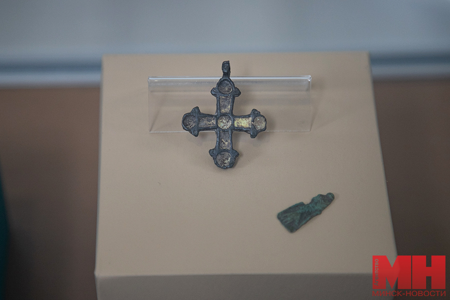 — Всего два месяца работы археологов на Менке в 2023 году дали большое количество новых артефактов, — отметил директор Института истории НАН, кандидат исторических наук Вадим Лакиза. — Но сегодня на выставке в ратуше мы показываем самые уникальные из них, которые относятся к IX–XII векам нашей эры. Среди них — византийские и сирийские бусы, поясные накладки, которые говорят нам о том, что белорусы почти тысячу лет назад имели обширные торговые связи как со скандинавскими землями, так и со Средиземноморьем. Очень важно, что сегодня жители Беларуси и иностранные гости увидят на выставке уникальные керамические изделия с изображениями родовых гербов наших князей. Изяслав, сын Рогнеды и Владимира, — представитель местной княжеской династии.