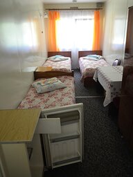 В одной комнате от двух до четырех кроватей, общий санузел находится в коридоре.