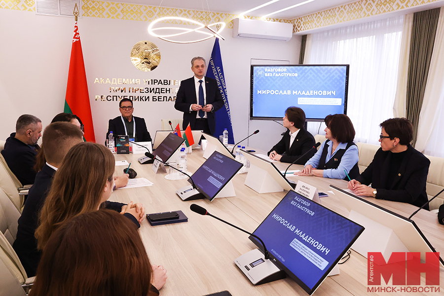 М. Младенович рассказал, что приехал в Беларусь как международный наблюдатель на выборы Президента, и отметил, что ему приятно поделиться опытом Сербии с будущими белорусскими управленцами.
