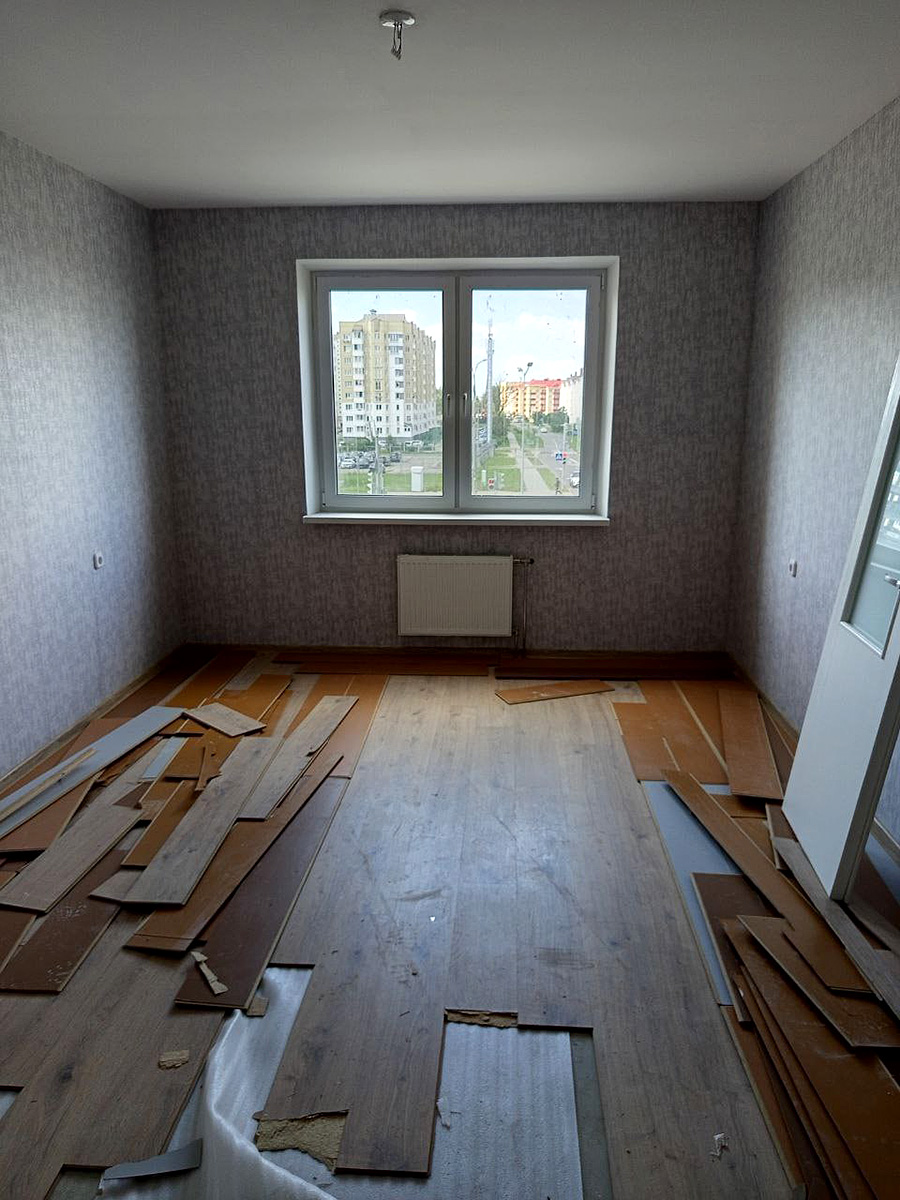 — Отсутствовали входные двери, на межкомнатных виднелась плесень. Ламината на кухне не было, а в других комнатах уложен наполовину. Повсюду — отставшие обои, — поделилась Татьяна.
