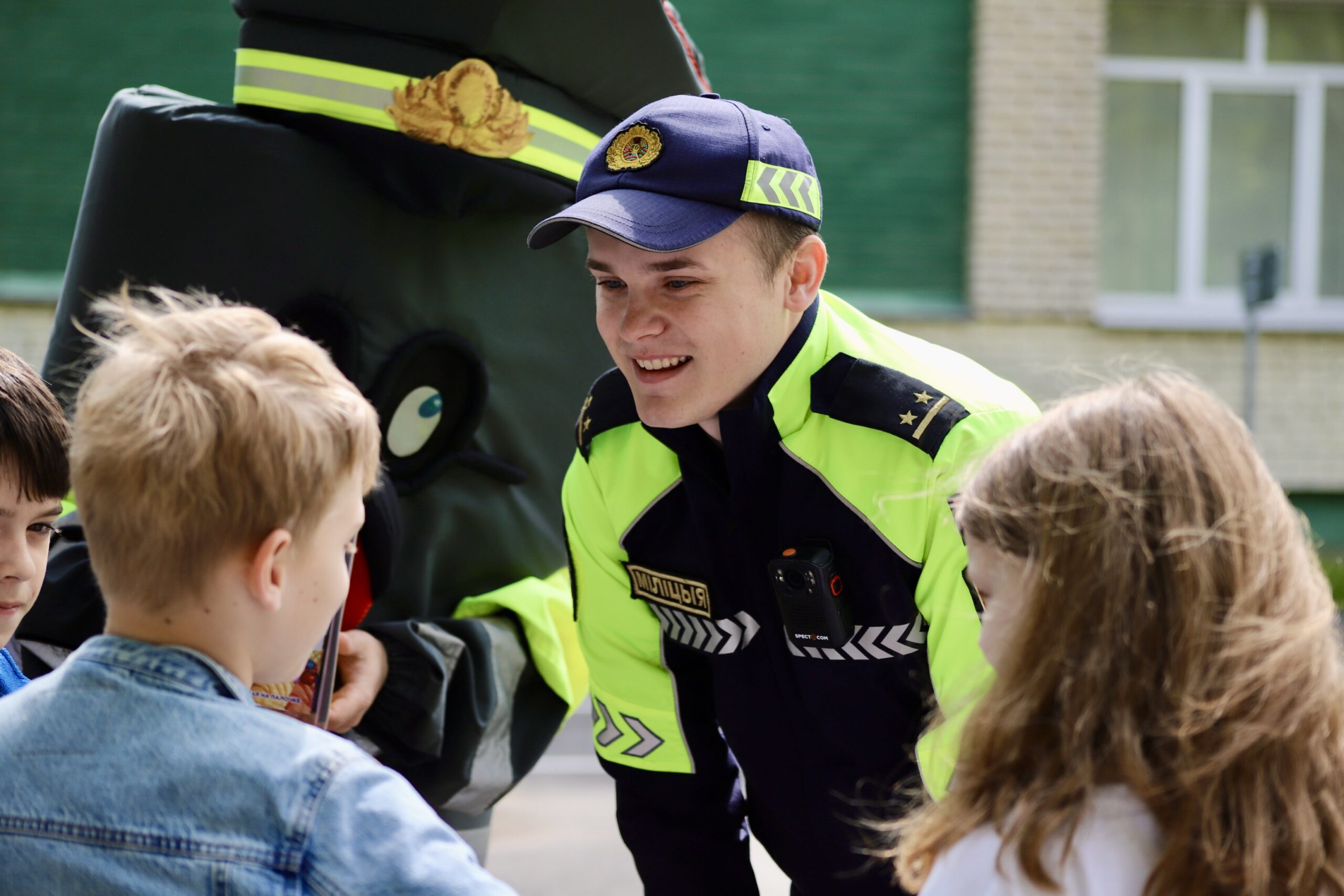 О правилах безопасного поведения вблизи проезжей части и на дворовой территории, использования велосипедов и средств персональной мобильности сотрудники ГАИ напомнили ребятам, отдыхающим в воспитательно-оздоровительном лагере средней школы № 169.