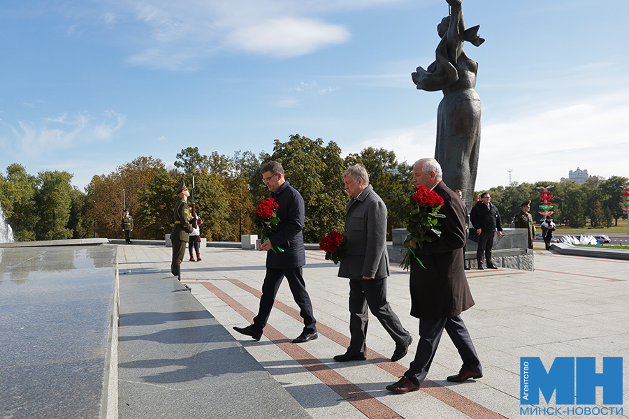 Встреча прошла у обелиска «Минск — город-герой», где В. Кухарев, А. Русских и председатель Брестского облисполкома Петр Пархомчик вместе с ребятами из Ульяновска и Минска приняли участие в торжественной церемонии возложения цветов и венков.