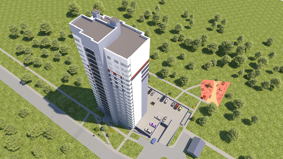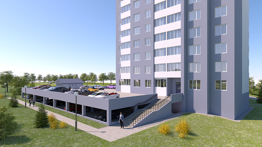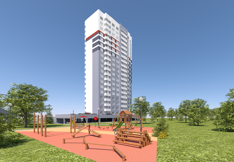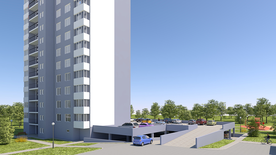 Одноподъездная 19-этажка вырастет на участке в границах ул. Грушевской — пер. Разинского — ул. Разинской. В доме будет 75 квартир: 18 однушек, 19 двушек и 38 трешек. Примерная площадь квартир соответственно: 42; 65,5; от 86 до 95 м2. Конструктив здания — монолитный каркас с монолитным перекрытием и наружными стенами из керамзитобетонных блоков. Квартиры сдаются с полной отделкой. В здании предусмотрено помещение для товарищества собственников. Помимо жилой части запроектирована также встроенно-пристроенная гараж-стоянка открытого типа на 42 машины. На дворовой территории обустроят детскую и спортивную площадки, крытую велопарковку, площадку для отходов. Детская и спортивная зоны будут отделены от проездов ограждением высотой 1 метр, на котором предусмотрено вертикальное озеленение из девичьего винограда. Покрытие детской площадки — из резиновой крошки.
