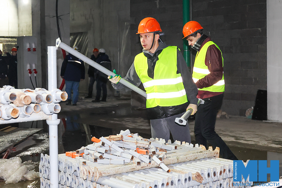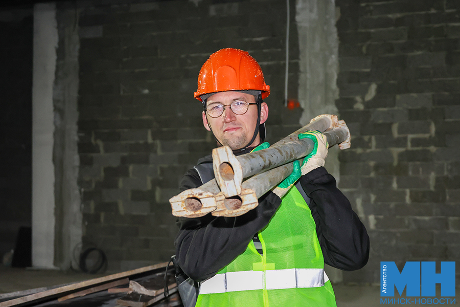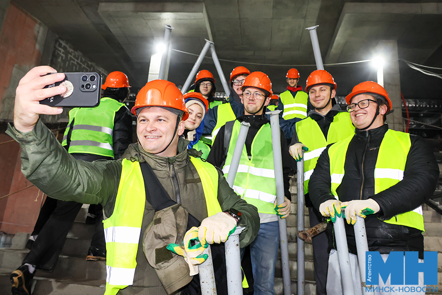 — Около 50–70 студентов города Минска помогают строителям на всех уровнях: от установки опалубки до отделочных и покрасочных работ. Кто-то переносит тяжелые материалы, кто-то задействован в монтаже конструкций — каждый на своем месте, — подчеркнул собеседник.