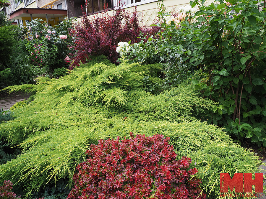 — Хотелось удивлять прохожих, чтобы моя клумба вызывала восхищение и притягивала взгляды. Некоторые растения прижились сразу, другие — нет. Постепенно подобрала коллекцию тех цветов и кустарников, которые легко адаптируются к нашим условиям. В основном делаю акцент на многолетники. Это хвойные растения — барбарисы и можжевельник, а также розы — их у меня 28 видов: плетистые, мускусные, кустовые… Есть еще фиолетовый шалфей. Чтобы защитить сад от вандалов, высаживаю также колючие растения: они служат природной преградой, — поясняет Т. Протасевич.