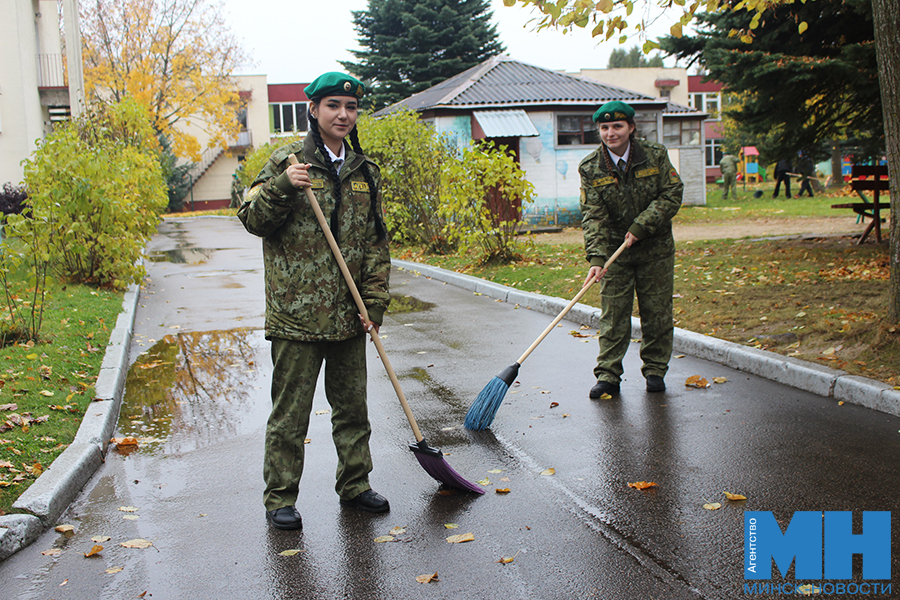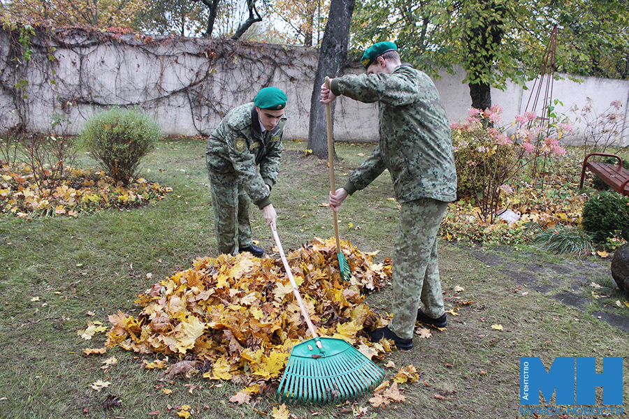Юные участники трудовой акции — учащиеся средней школы № 206 им. А. М. Кижеватова Даниил Свиридов и Денис Корень. Оба парня учатся в профильном классе пограничной направленности. И на субботник пришли в соответствующей военной форме.