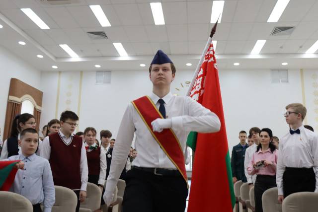 В церемонии приняли участие заместитель председателя Палаты представителей Национального собрания Вадим Ипатов, представители Государственного пограничного комитета, Института пограничной службы, военного комиссариата Центрального района, управления по образованию администрации Центрального района, родители учащихся.