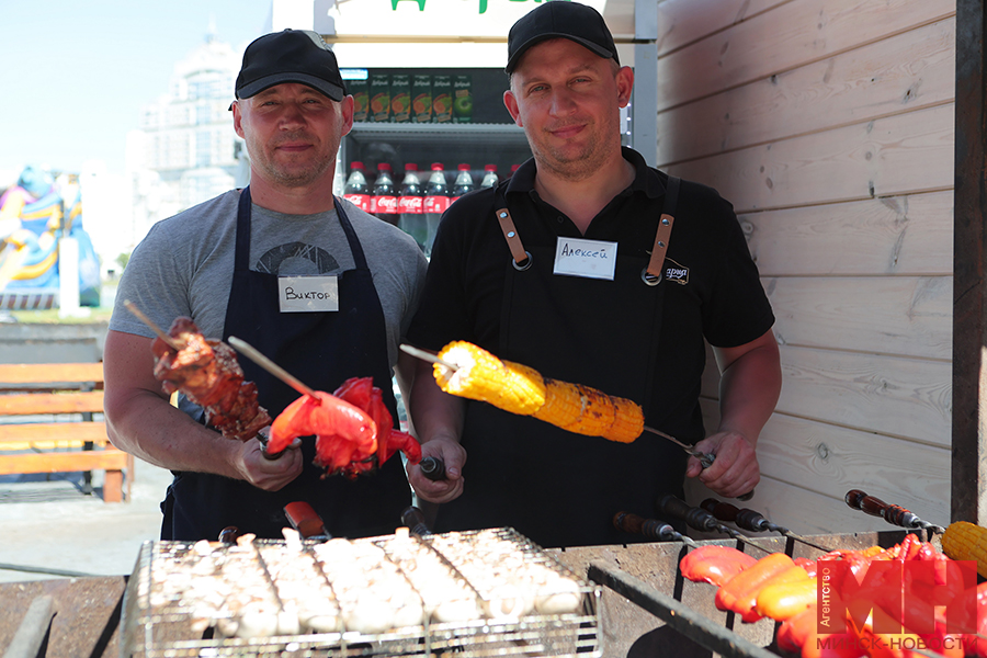 — Праздничные выходные выдались отличные. Организованные городом мероприятия прошли на высоком уровне, люди культурно отдыхали — посетителей было очень много, — поделился мангальщик Владимир. — На ярмарку приехало немало иностранцев, причем не только россиян и китайцев — с нами заговаривали на английском гости из Болгарии, Испании, Польши. Конечно, гости чаще всего брали мясо. В частности, коронное блюдо — шашлыки. Мы предлагаем их из свиной шеи, куриного филе и баранины, но свинина — вне конкуренции.