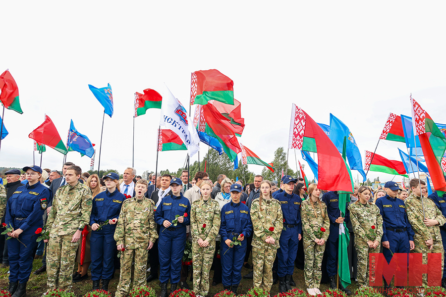 — Сегодня на этом месте мы вспоминаем миллионы белорусов, погибших в годы Великой Отечественной войны, — отметил В. Кухарев. — Память о том времени всегда должна оставаться в наших сердцах. Нельзя допустить повторения трагических событий минувшего века, позволить темным силам мешать людям жить, убивать их, подчинять своим законам. Каждый человек имеет право на жизнь. Мы накануне Дня народного единства, праздника, который нас объединяет, сплачивает, как нацию, общество людей, являющихся потомками тех, кто в годы военного лихолетья сумел сохранить свою государственность, менталитет, культуру и самобытность, обязаны передать эту священную память последующим поколениям. Хочу поздравить всех с Днем народного единства, пожелать здоровья, чтобы мы всегда были независимы, могли сами принимать решения и жить в свободной стране. Это нам завещали наши предки, которые здесь покоятся.
