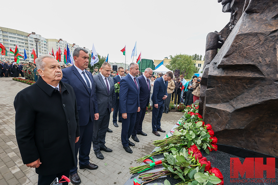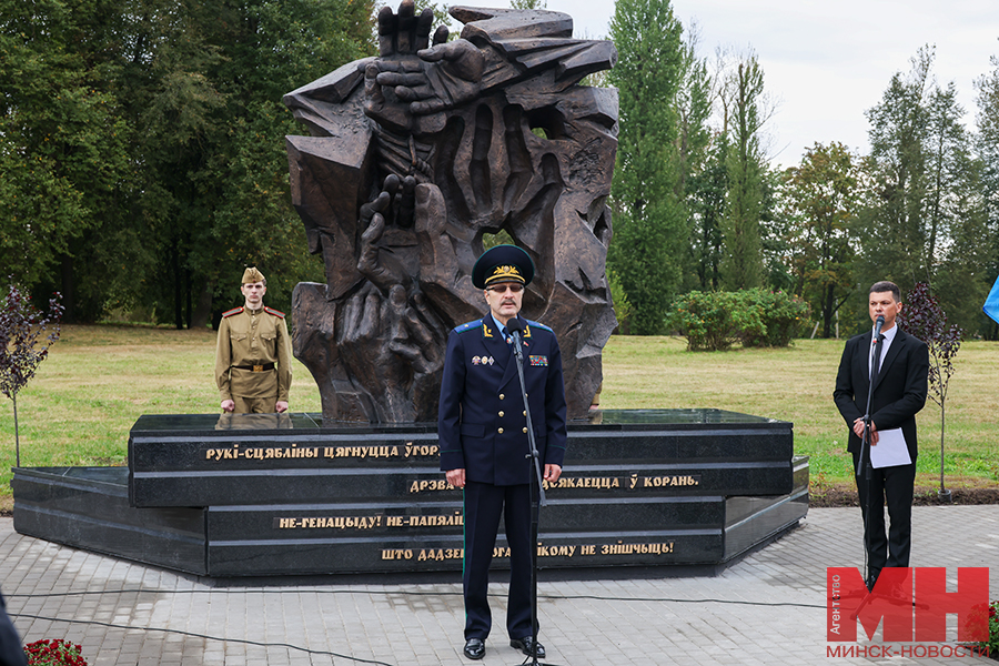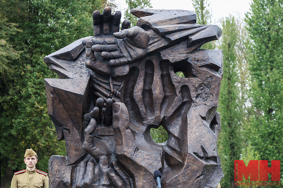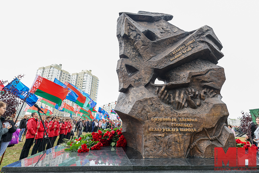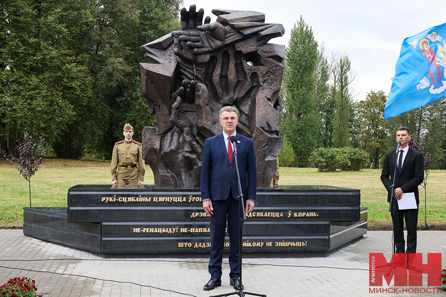 — Такие памятные знаки установлены во всех областях Беларуси. Мы открываем его и в столице нашей страны, — сказал в своем выступлении А. Стук. — Минск и Минщина — это земля, которая с первых дней и долгие годы была под гнетом нацистов. На этой территории был концлагерь «Тростенец». Только вдумайтесь в эту цифру: по последним данным, здесь погибло более полумиллиона человек. Земля эта глубоко пропитана кровью. Этот памятный знак имеет глубокий символ. С его открытием, в городе появится еще одно место, напоминающее подрастающим поколениям, соотечественникам и туристам о трагических событиях военных лет.