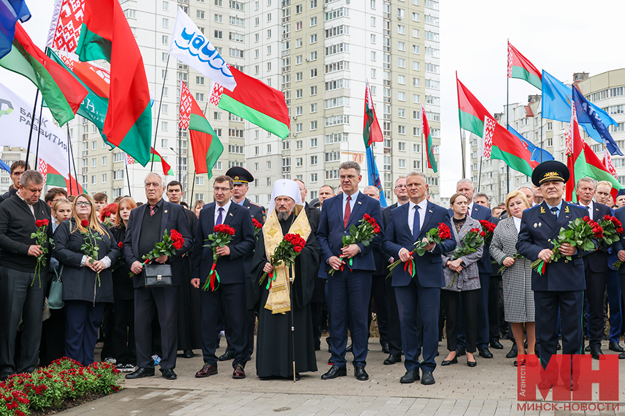 Участие в траурном мероприятии приняли помощник Президента Беларуси — инспектор по городу Минску Юрий Фролов, председатель Мингорисполкома Владимир Кухарев, митрополит Минский и Заславский патриарший экзарх всея Беларуси Вениамин, заместитель генерального прокурора Беларуси Алексей Стук, председатель Мингорсовета Артём Цуран, прокурор города Минска Олег Лаврухин, председатель Минского городского совета ветеранов Филипп Высоцкий, главы администраций районов столицы, руководители городских организаций и политических партий, представители Министерства внутренних дел.