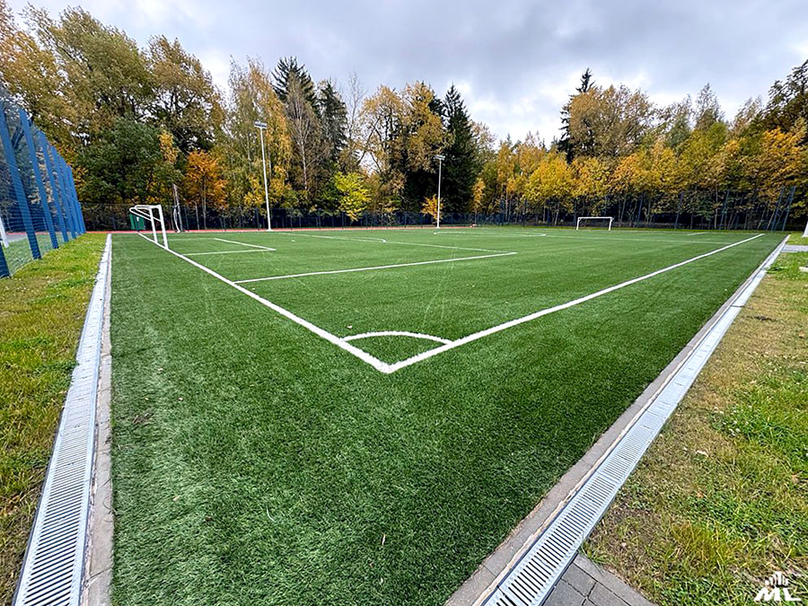 Рядом с комплексом находятся стадион и спортивные площадки, беговая дорожка, установлены тренажеры для занятий на улице.