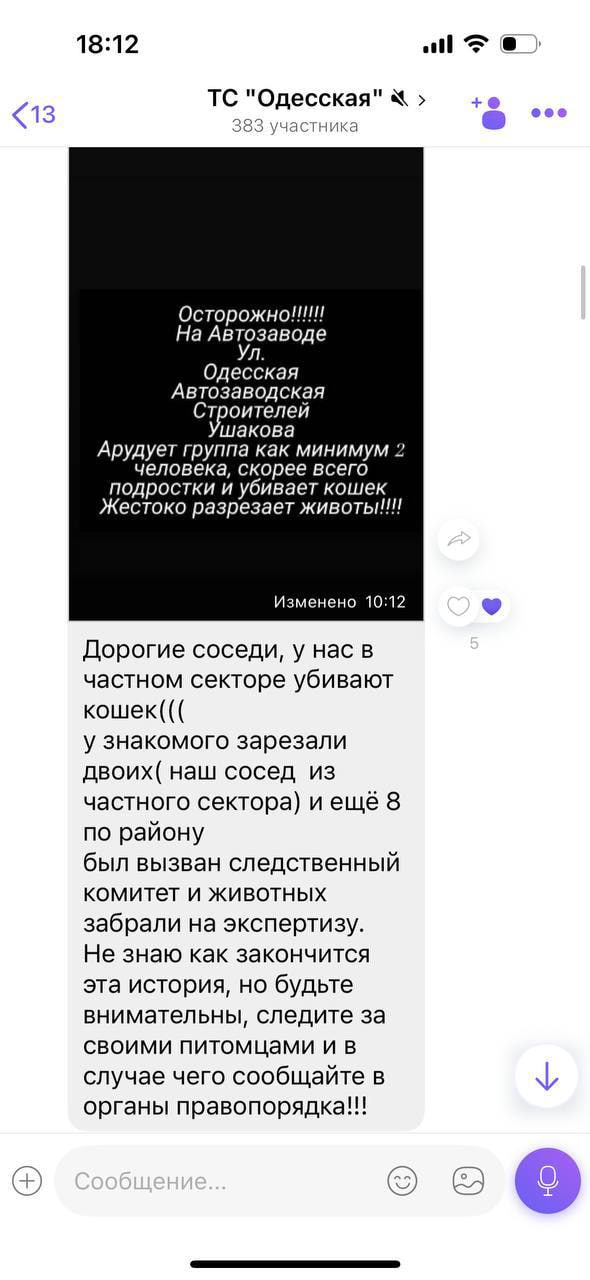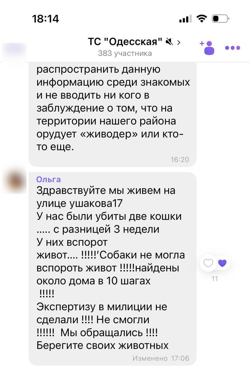 Со слов местных жителей, обнаружено более 10 погибших животных с идентичными травмами. Чтобы привлечь внимание к проблеме, владельцы сообщают о ней в правоохранительные органы и расклеивают объявления по району.