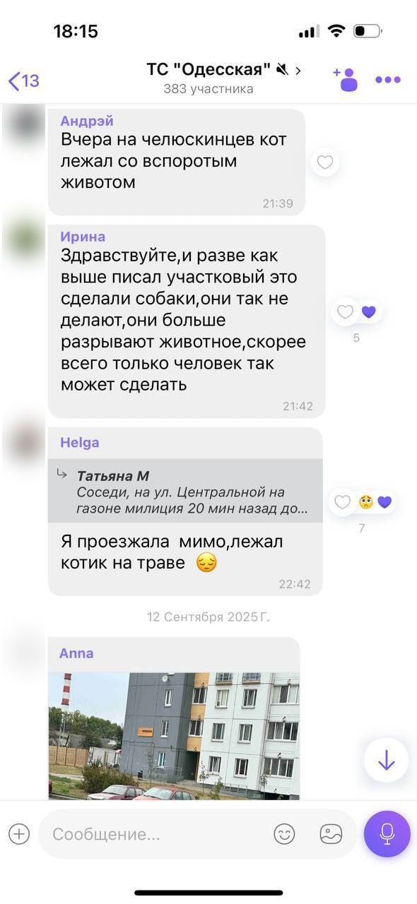 С начала сентября проживающие в районе автозавода минчане стали обнаруживать трупы своих домашних питомцев. Горожане полагают, что котов и кошек умышленно убивают, причем с особой жестокостью. Подтверждение тому — вспоротые животы и извлеченные внутренности.