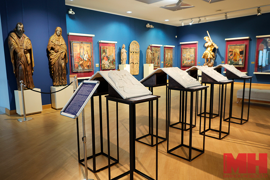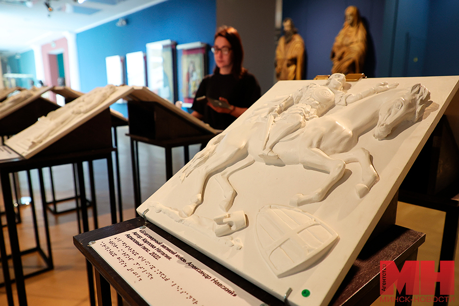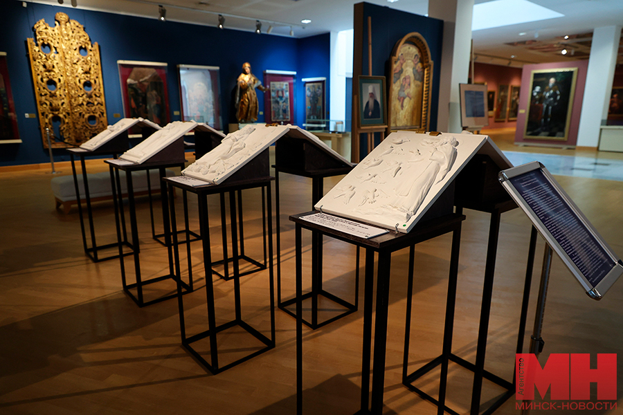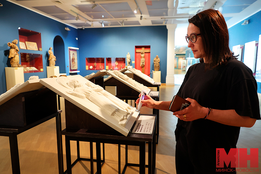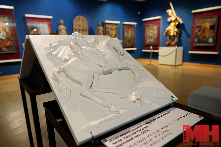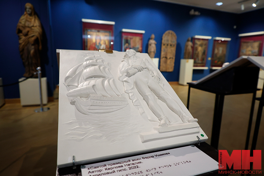 Выставку тактильных картин «Небесные покровители» от скульпторов из России представили в Национальном художественном музее, сообщает корреспондент агентства «Минск-Новости».