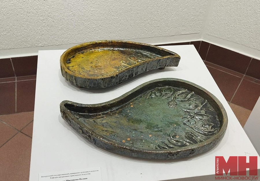 В экспозиции представлены работы преподавателей и студентов кафедры декоративно-прикладного искусства Белорусского государственного университета культуры и искусств.