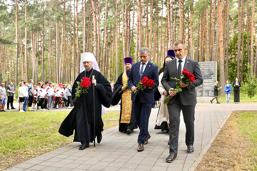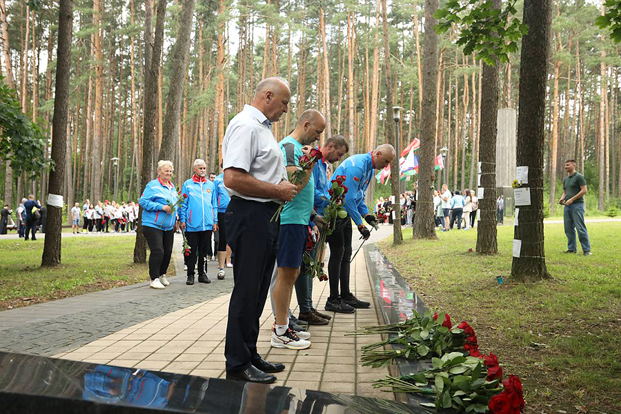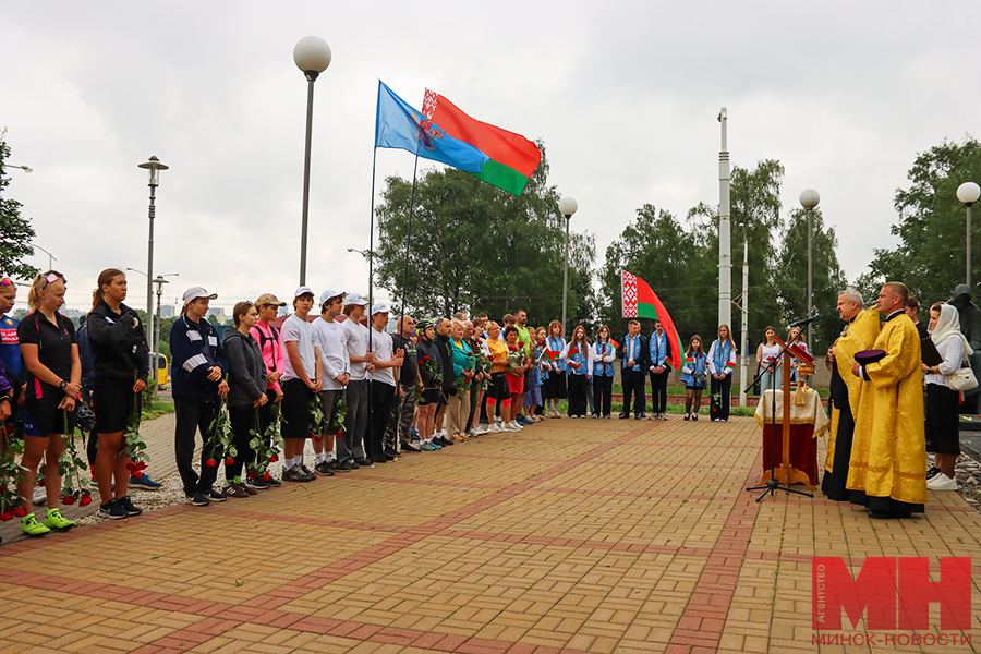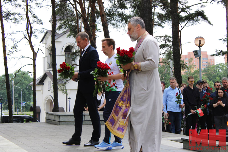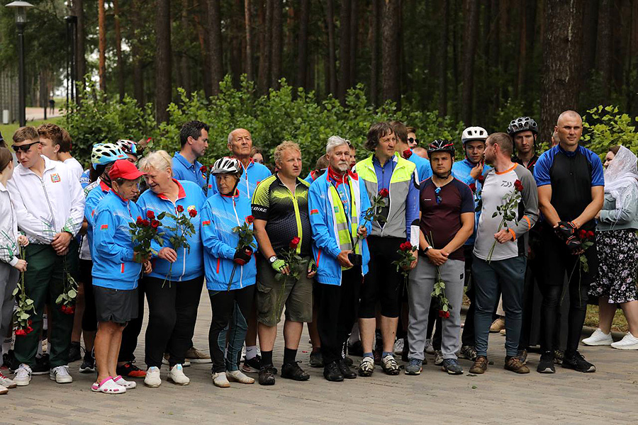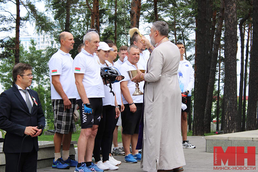 — Сегодня мы находимся в месте гордости и славы Минска, его жителей и всех тех, кто в суровые годы военных испытаний не сдался и не покорился, кто продолжал борьбу в суровых условиях гитлеровской оккупации. От лица Мингорисполкома и себя лично хочу поблагодарить Белорусскую православную церковь и спортивную общественность за реализацию такого масштабного проекта. Его география охватила всю нашу страну, захватывает множество наших городов и поселков, и это говорит о масштабе той трагедии, что обрушилась на белорусскую землю, — обратился к участникам велопробега у стелы «Минск — город-герой» первый заместитель начальника главного управления идеологической работы и по делам молодежи Мингорисполкома Андрей Казакевич.
