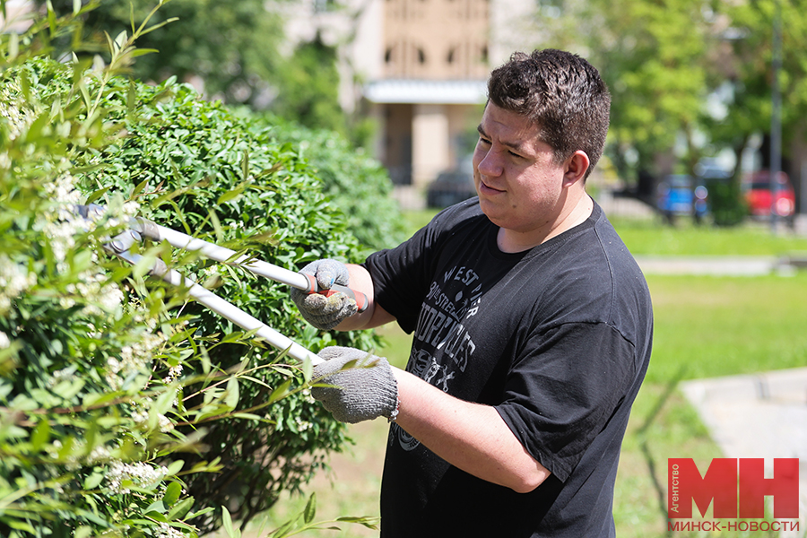Наводить порядок в школе помогают одиннадцатиклассник Артём Домасевич и десятиклассник Игорь Михалевич. Парни летом трудятся в своем учреждении образования в составе студенческого отряда.